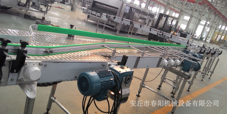 平頂板鏈輸送機(jī)是專門用于平頂式輸送機(jī)的輸送鏈條。常用來輸送玻璃瓶、金屬易拉缺罐、各種塑料容器、包裹,也可輸送自助餐物品與機(jī)器零件等。輸送機(jī)械設(shè)備用平頂鏈有直行平頂鏈與側(cè)彎平頂鏈兩種結(jié)構(gòu)。鏈板輸送機(jī)廣泛適于用于食品、罐頭、藥品、飲料、化妝品和洗滌用品、紙制品、調(diào)味品、乳業(yè)及煙草等的自動輸送、分配、和后道包裝的連線輸送。滿足貼標(biāo)、灌裝、清洗等設(shè)備的單列輸送的要求,滿足殺菌機(jī)、儲瓶臺、冷瓶機(jī)的大量供料的要求,可將兩條鏈板輸送機(jī)的頭尾部做成重疊式的混合鏈,使得瓶(罐)體處于動態(tài)過度狀態(tài),使輸送線上不滯留瓶子,可以滿足空瓶及實瓶的壓力和無壓力輸送。